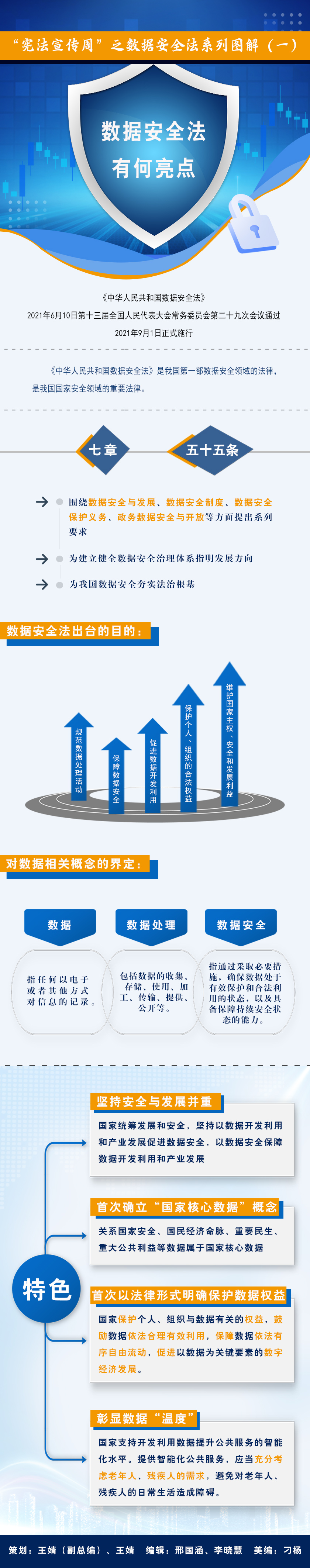 值此第四個(gè)“憲法宣傳周”之際,法制網(wǎng)將為您解讀今年9月1日起施行的《中華人民共和國數(shù)據(jù)安全法》——這部法律的亮點(diǎn)是什么?它是如何支持促進(jìn)數(shù)據(jù)安全與發(fā)展的?它又彰顯了哪些數(shù)據(jù)“溫度”?這一系列問題,都會(huì)在法制網(wǎng)《數(shù)據(jù)安全法圖解(系列)》中找到答案。