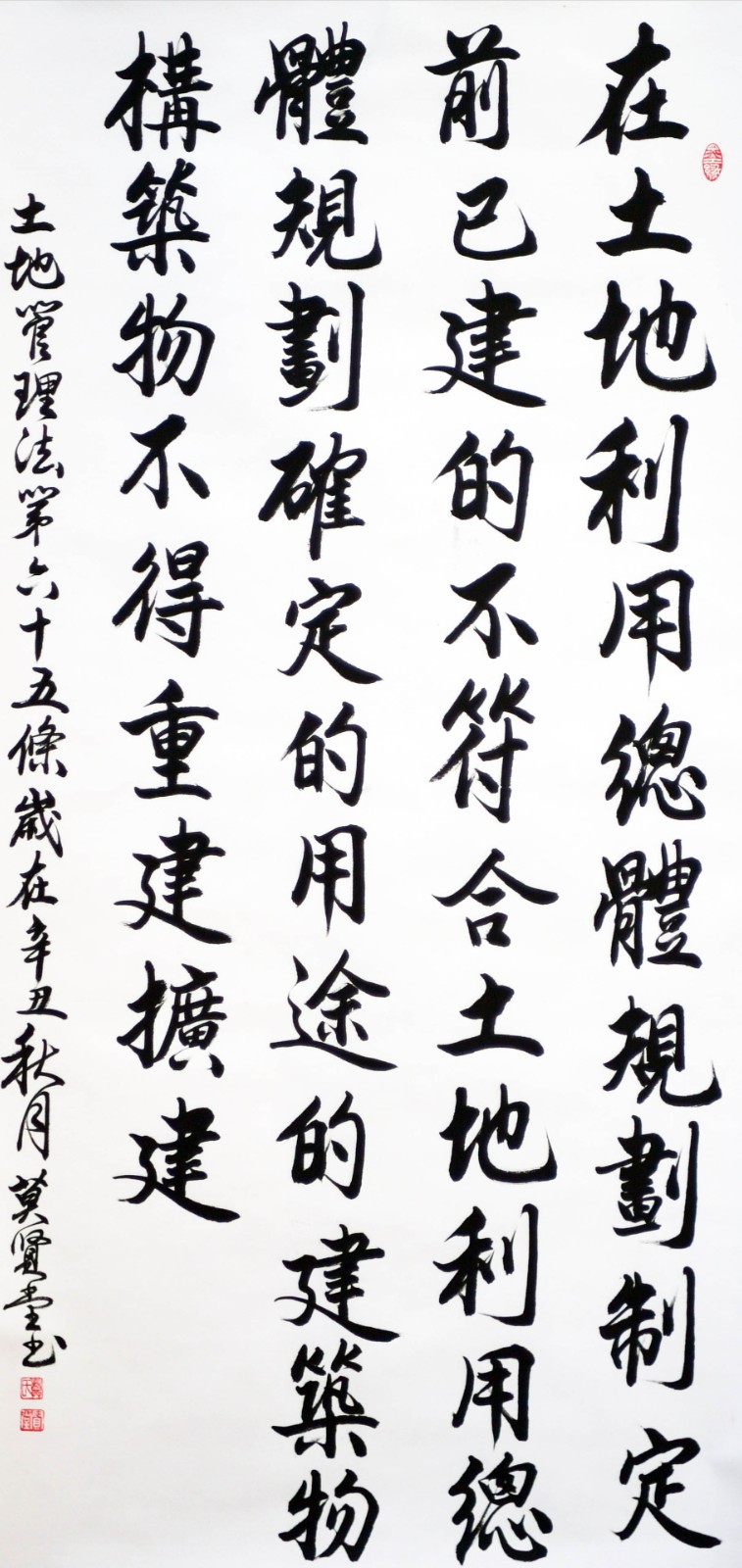 繼1600余位書法家參與書寫《中華人民共和國民法典》全部1260條法條之后,法治日報社聯(lián)合自然資源部法規(guī)司、自然資源部書畫研究會和北京昌平書法家協(xié)會,將筆端對準(zhǔn)土地管理“一法一條例”,即《中華人民共和國土地管理法》和《中華人民共和國土地管理法實施條例》。