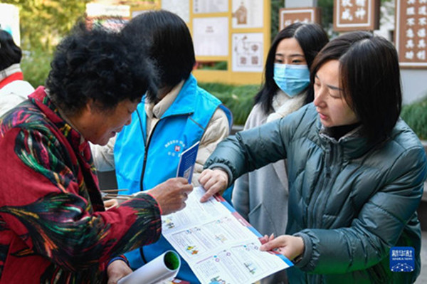 12月3日,湖州市吳興區(qū)愛山街道聯(lián)合司法部門在獅子巷社區(qū)憲法主題公園向居民發(fā)放憲法宣傳資料。
