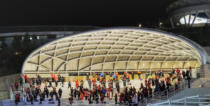 在北京2022年冬奧會(huì)和冬殘奧會(huì)延慶賽區(qū)核心區(qū)南區(qū)東部,延慶冬奧村(冬殘奧村)依山而建。11日上午,約360人組成的30個(gè)代表團(tuán)和1個(gè)觀察團(tuán)陸續(xù)抵達(dá)延慶冬奧村(冬殘奧村),開展“全要素”運(yùn)行測(cè)試。