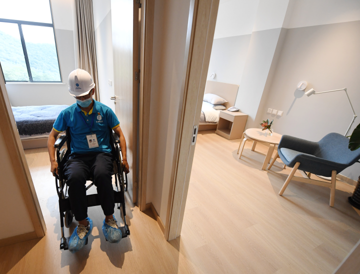 8月20日,工作人員展示北京冬奧會(huì)延慶冬奧村無障礙樣板間。新華社記者 張晨霖 攝