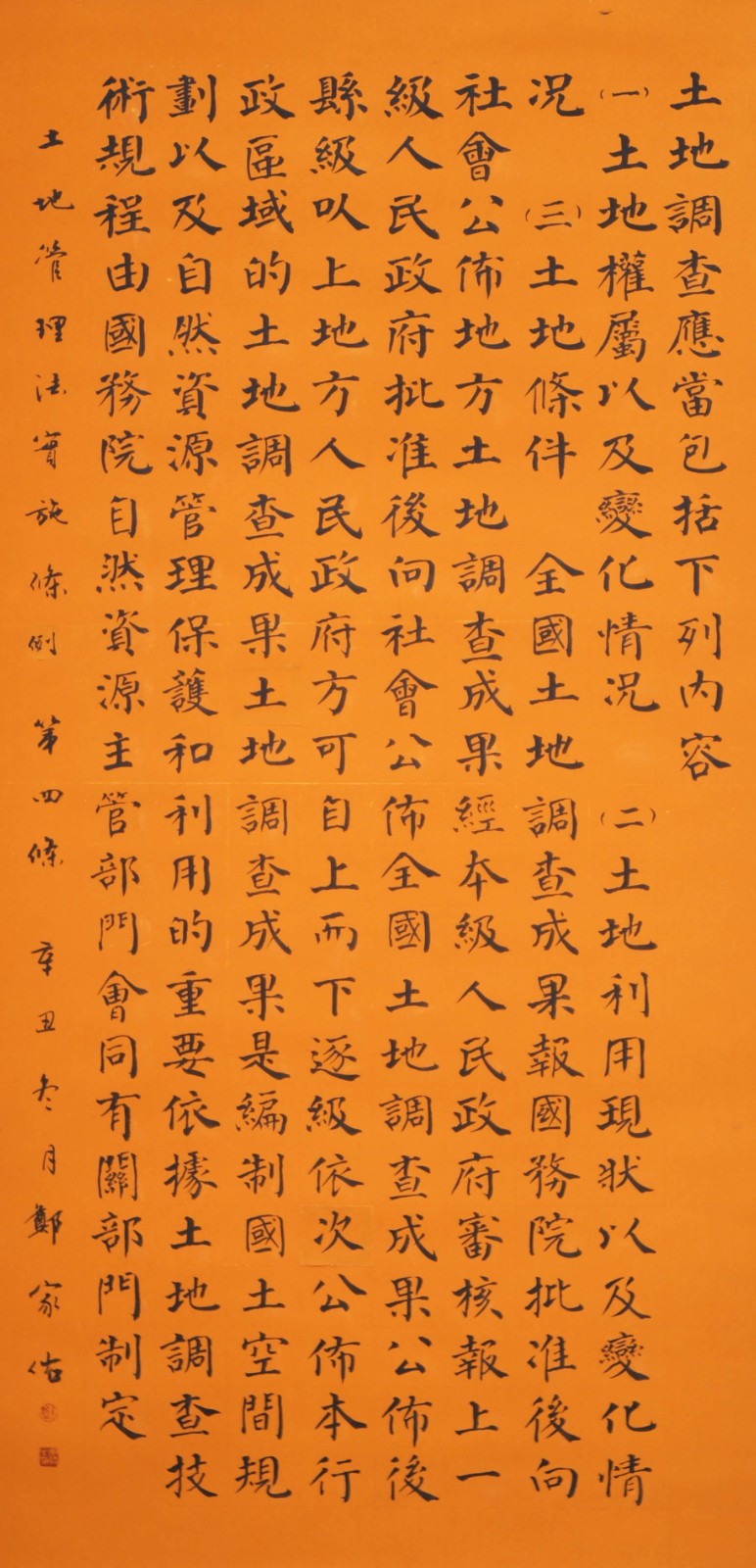 繼1600余位書法家參與書寫《中華人民共和國民法典》全部1260條法條之后,法治日報社聯(lián)合自然資源部法規(guī)司、自然資源部書畫研究會和北京昌平書法家協(xié)會,將筆端對準土地管理“一法一條例”,即《中華人民共和國土地管理法》和《中華人民共和國土地管理法實施條例》。