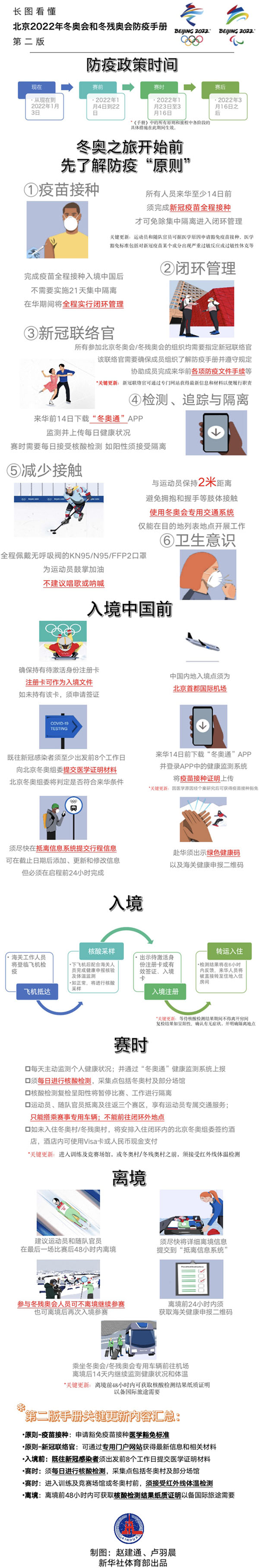 據(jù)悉,《防疫手冊》結合了中國的防疫政策,也結合了疫情下舉辦世界大型體育賽事的規(guī)律,從最初確定原則方針,到今年9月30日發(fā)布關鍵性政策,到10月25日發(fā)布第一版《防疫手冊》搭建四梁八柱,再到第二版《防疫手冊》將內(nèi)容更加細化,整個過程都是在防疫專家指導下,認真研究各方面政策,與國際奧委會等有關各方密切磋商,最后形成的集體智慧。