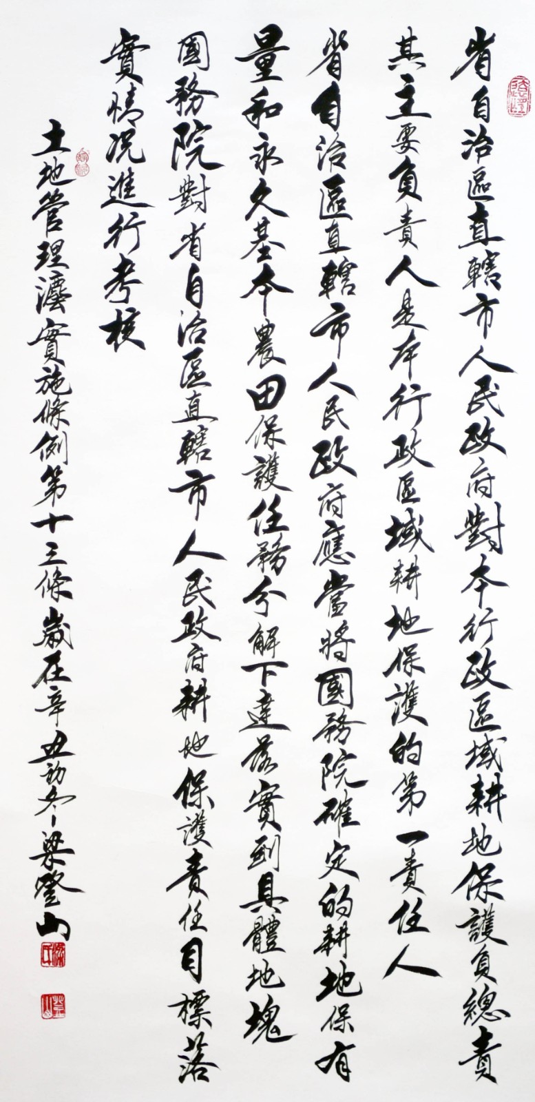 繼1600余位書(shū)法家參與書(shū)寫(xiě)《中華人民共和國(guó)民法典》全部1260條法條之后,法治日?qǐng)?bào)社聯(lián)合自然資源部法規(guī)司、自然資源部書(shū)畫(huà)研究會(huì)和北京昌平書(shū)法家協(xié)會(huì),將筆端對(duì)準(zhǔn)土地管理“一法一條例”,即《中華人民共和國(guó)土地管理法》和《中華人民共和國(guó)土地管理法實(shí)施條例》。