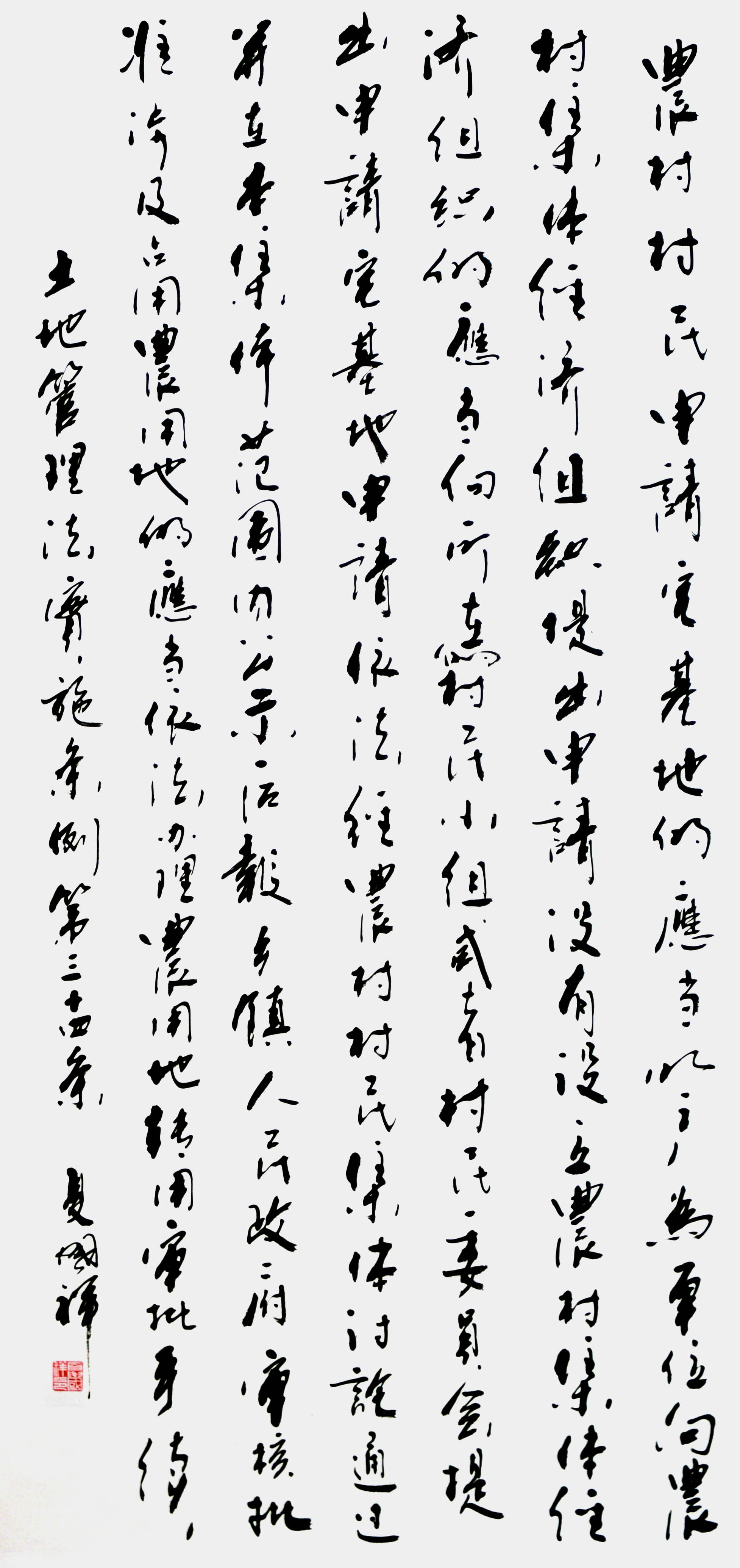 繼1600余位書法家參與書寫《中華人民共和國民法典》全部1260條法條之后,法治日報社聯(lián)合自然資源部法規(guī)司、自然資源部書畫研究會和北京昌平書法家協(xié)會,將筆端對準土地管理“一法一條例”,即《中華人民共和國土地管理法》和《中華人民共和國土地管理法實施條例》。