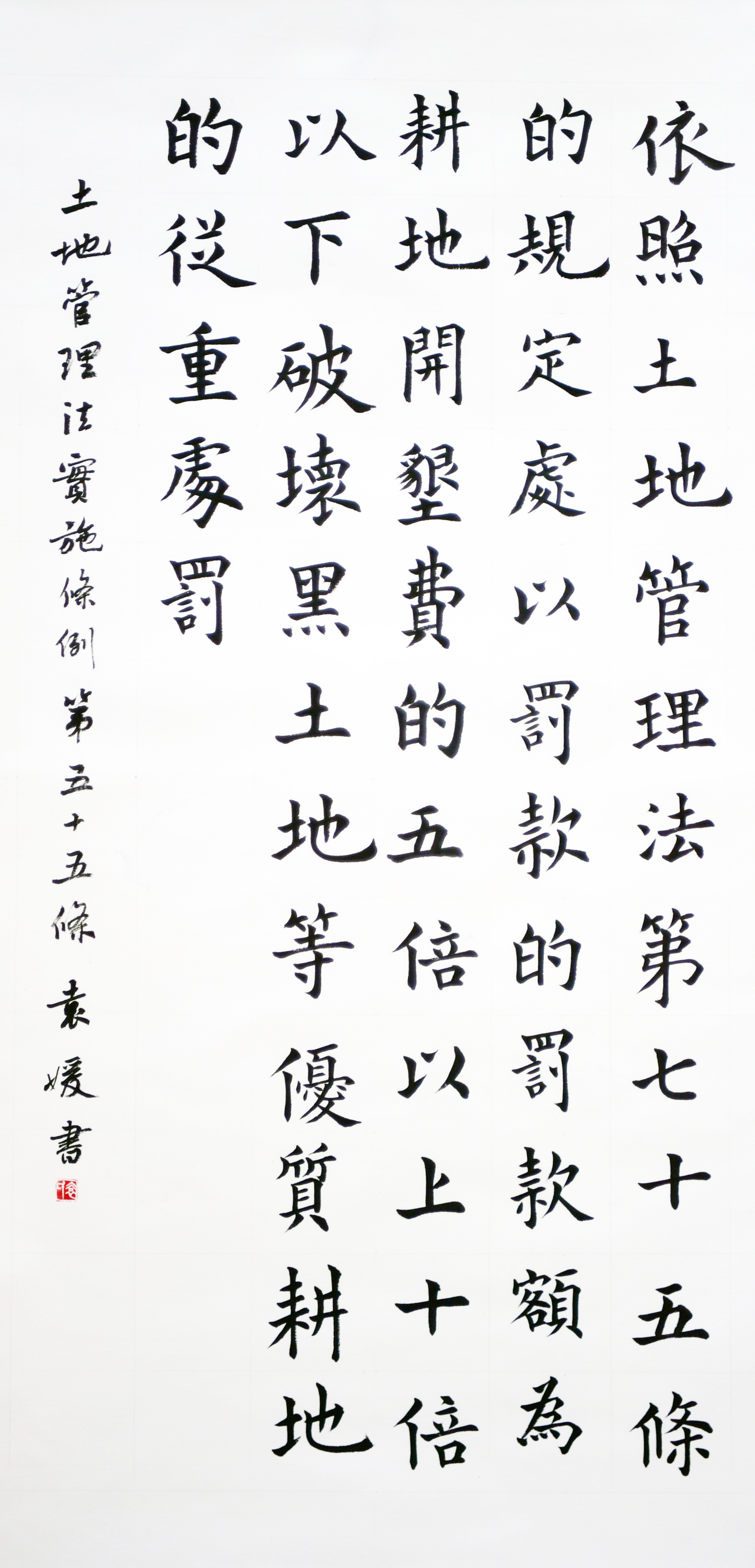 繼1600余位書法家參與書寫《中華人民共和國民法典》全部1260條法條之后,法治日報社聯(lián)合自然資源部法規(guī)司、自然資源部書畫研究會和北京昌平書法家協(xié)會,將筆端對準土地管理“一法一條例”,即《中華人民共和國土地管理法》和《中華人民共和國土地管理法實施條例》。
