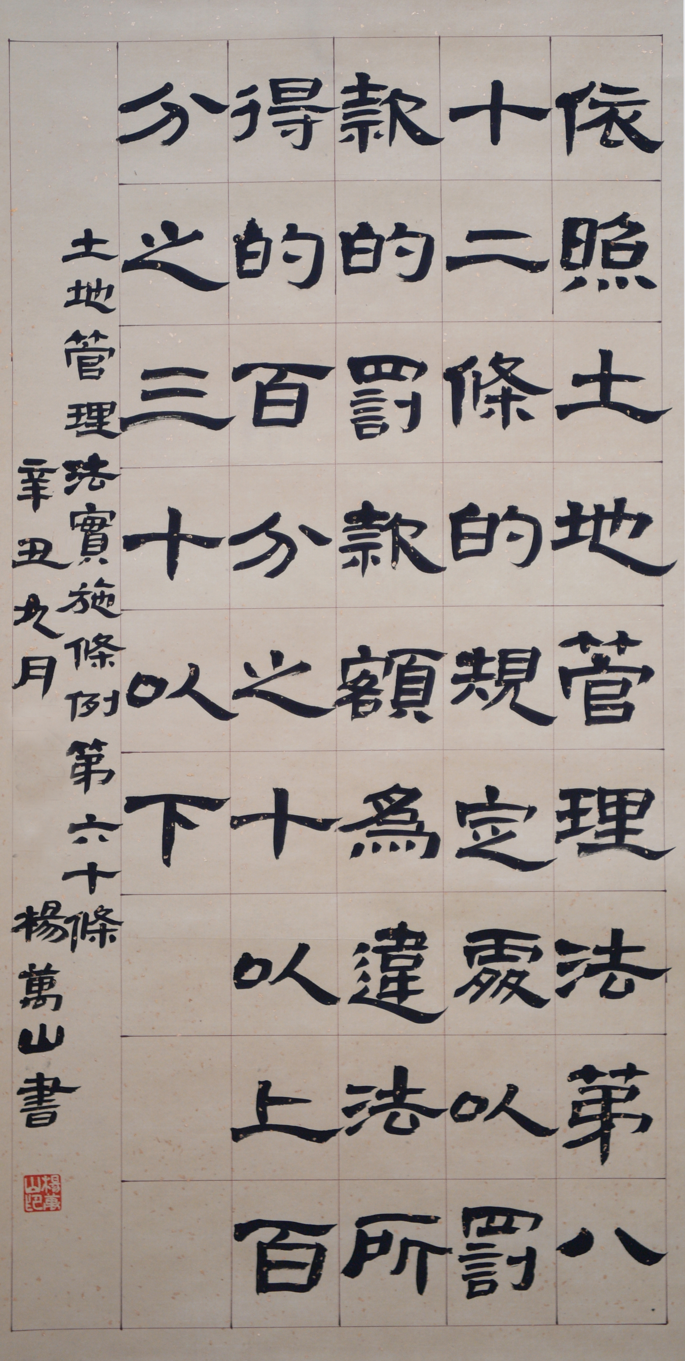 繼1600余位書法家參與書寫《中華人民共和國民法典》全部1260條法條之后,法治日報社聯(lián)合自然資源部法規(guī)司、自然資源部書畫研究會和北京昌平書法家協(xié)會,將筆端對準(zhǔn)土地管理“一法一條例”,即《中華人民共和國土地管理法》和《中華人民共和國土地管理法實(shí)施條例》。