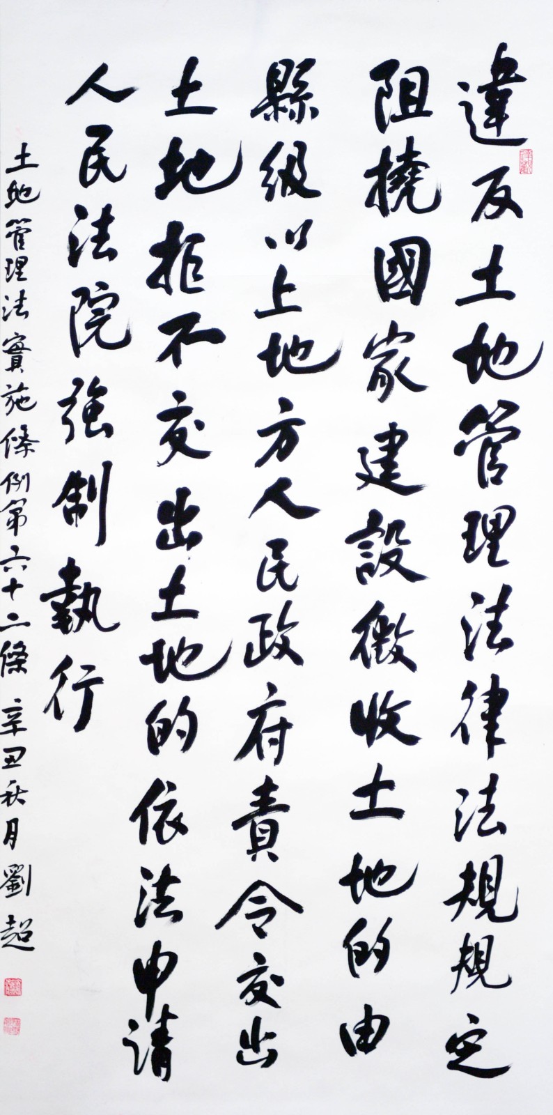 繼1600余位書法家參與書寫《中華人民共和國民法典》全部1260條法條之后,法治日報社聯(lián)合自然資源部法規(guī)司、自然資源部書畫研究會和北京昌平書法家協(xié)會,將筆端對準(zhǔn)土地管理“一法一條例”,即《中華人民共和國土地管理法》和《中華人民共和國土地管理法實(shí)施條例》。