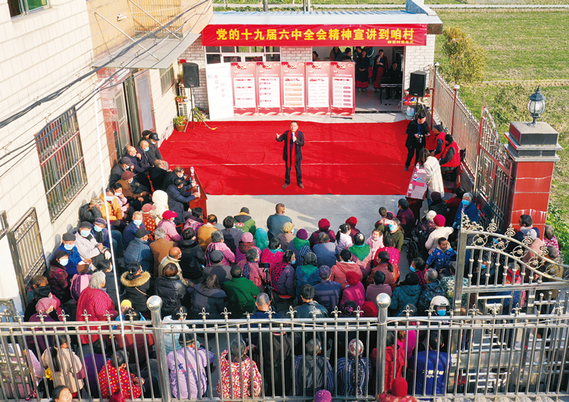 2021年12月5日,江蘇省海安市曲塘鎮(zhèn)群賢村開展“黨的十九屆六中全會精神宣講到咱村”活動,通過百姓名嘴宣講、文藝表演、詩朗誦等形式,向群眾宣傳全會精神。 人民視覺 姜明/攝