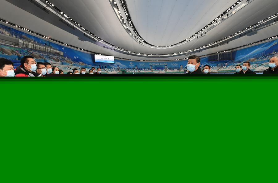 1月4日,中共中央總書記、國家主席、中央軍委主席習近平在北京考察2022年冬奧會、冬殘奧會籌辦備賽工作。這是4日上午,習近平在國家速滑館考察。新華社記者 謝環(huán)馳 攝