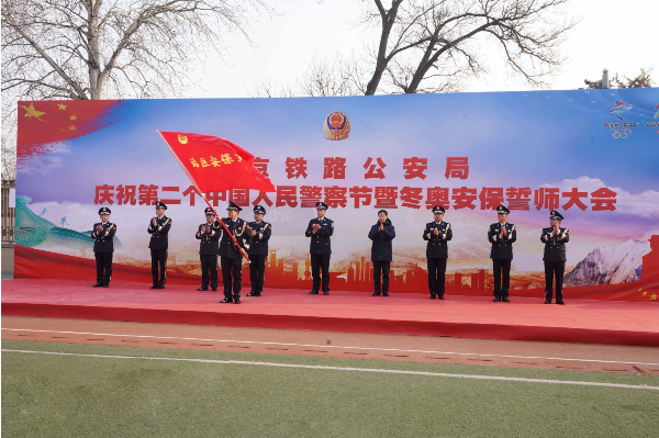 “我是中國(guó)人民警察,我宣誓.......”在北京鐵路公安局黨委書記、局長(zhǎng)王旭章帶領(lǐng)下,110名干部民警代表組成“110”隊(duì)形,面向警旗,莊嚴(yán)宣誓,慶祝自己的節(jié)日。在隨后進(jìn)行的北京鐵路公安局冬奧安保誓師大會(huì)上,王旭章又分別為“黨員干部先鋒隊(duì)”“站區(qū)安保突擊隊(duì)”“線路防控突擊隊(duì)”“應(yīng)急處置突擊隊(duì)”和“賽時(shí)運(yùn)送護(hù)衛(wèi)隊(duì)”五支冬奧安保維穩(wěn)專業(yè)隊(duì)授旗,并代表北京鐵路公安局黨委莊重承諾:北京鐵路公安機(jī)關(guān)全體干部民警將以鐵路冬奧安?!爸鲌?chǎng)、主責(zé)、主戰(zhàn)、主力”的政治站位和責(zé)任擔(dān)當(dāng),以“主戰(zhàn)用我,用我必勝”的戰(zhàn)斗意志和積極勇為,忠誠(chéng)履責(zé)、踐行使命,堅(jiān)決確保轄區(qū)的絕對(duì)安全,在北京冬奧盛會(huì)中,展現(xiàn)北京鐵警風(fēng)采,奉獻(xiàn)忠誠(chéng)與作為!