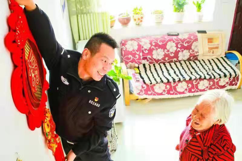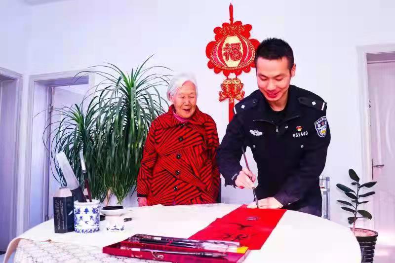 活動中,派出所民警李鵬翔、楊文龍到轄區(qū)孤寡、獨(dú)居和生活困難的群眾家中,親手書寫春聯(lián),幫助群眾掛上中國結(jié)和紅燈籠,并送去米、面、油、牛奶等慰問品表達(dá)節(jié)日的問候與祝福。期間,民警們特別登門拜訪了轄區(qū)75歲的抗美援朝老戰(zhàn)士李大娘家,為其送上春聯(lián),并聽李大娘講述抗美援朝故事,傳承擁軍愛民的光榮傳統(tǒng)。
