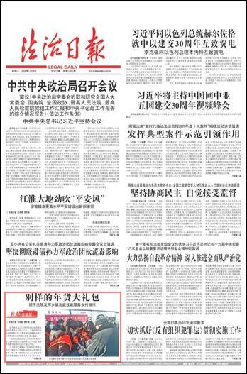 “俺要的這副春聯(lián)好,過年貼到家里大門上。”54歲的村民王大姐指著“江山千古秀 祖國萬年春”的春聯(lián)對(duì)《法治日?qǐng)?bào)》記者說。