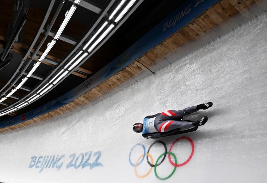 2月5日,奧地利選手沃爾夫?qū)そ鸬聽栐诒本?022年冬奧會(huì)男子單人雪橇項(xiàng)目比賽中。新華社記者 賀長山 攝