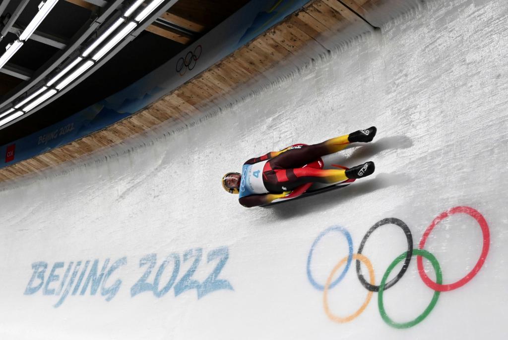 2月5日,德國選手約翰內(nèi)斯·路德維希在北京2022年冬奧會(huì)男子單人雪橇項(xiàng)目比賽中。新華社記者 賀長山 攝