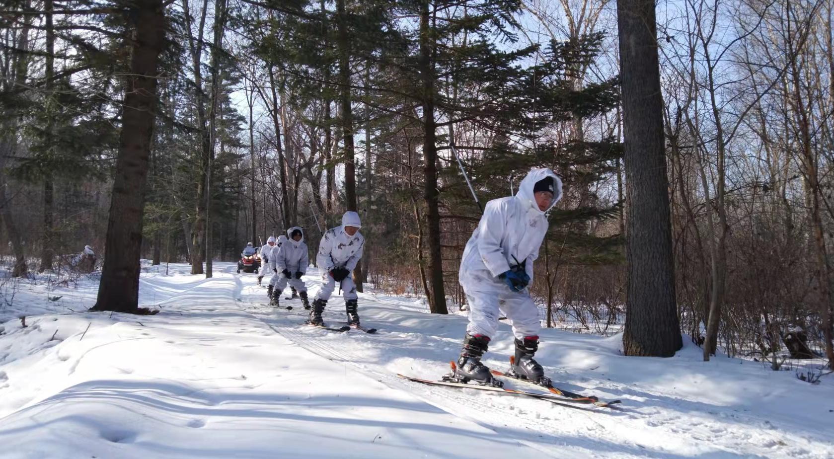 曹貴鑫迅速穿好滑雪服,逐一檢查隊(duì)員們的裝備后,率領(lǐng)隊(duì)伍向原始森林深處快速滑行……