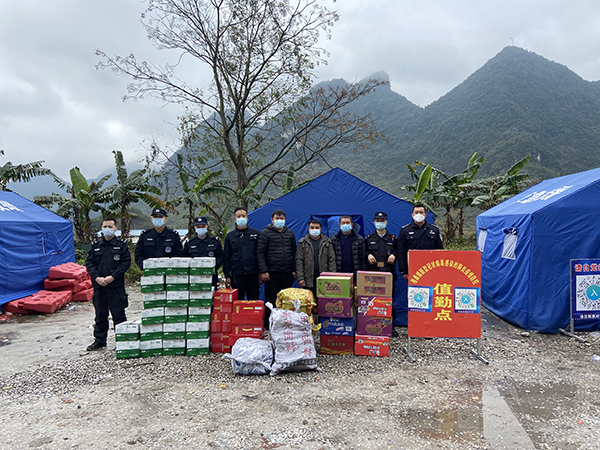 疫情無情人有情,隔離病毒不隔離愛。中石化德保石油公司向德保縣公安局捐贈抗疫物資一批;社會熱心人士向執(zhí)勤民輔警捐贈取暖器、暖帖一批;熱心群眾相繼為民輔警送來飲料和水果、熱騰騰的德保豬血腸和糍粑、抗疫愛心物資等;奶茶店為各個執(zhí)勤點的執(zhí)勤民警送來一批甜甜的奶茶;德保水廠緊急解決執(zhí)勤卡點水電問題,并贈送飲水機;天寒地凍,路過的熱心群眾為執(zhí)勤民警送來火盆火炭。直至夜半時分,還有愛心人士為執(zhí)勤人員送來熱騰騰的湯圓、茶葉蛋等。