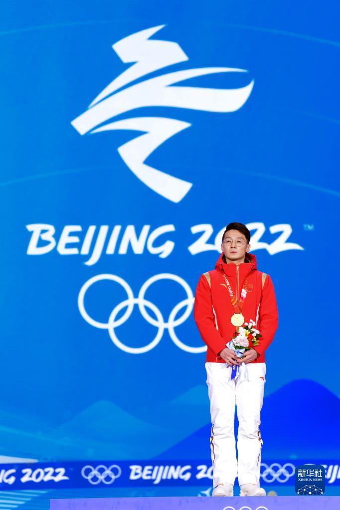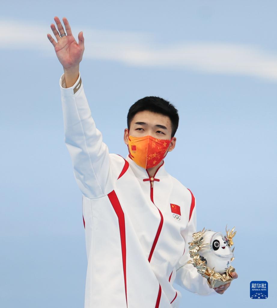 2月8日,短道速滑男子1000米比賽冠軍、中國(guó)選手任子威在獎(jiǎng)牌頒發(fā)儀式上。新華社記者 鞠煥宗 攝