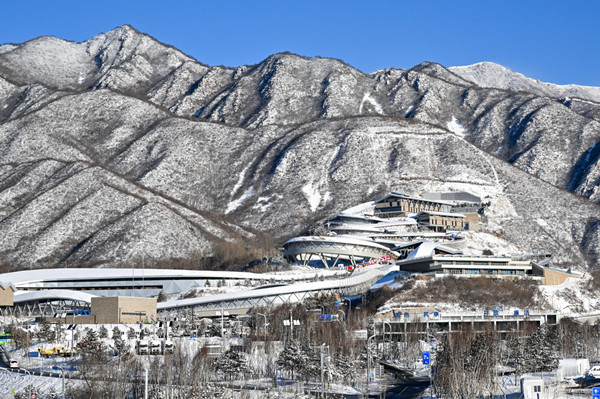 2月14日,雪后的北京延慶國(guó)家雪車雪橇中心銀裝素裹,美不勝收。新華社記者 陳益宸 攝