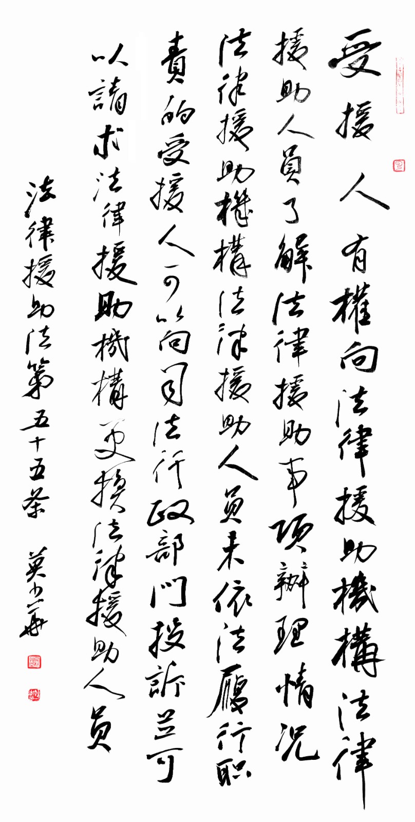 “書·法”活動(dòng)旨在為創(chuàng)新法治宣傳教育,多開一點(diǎn)腦洞、多花一點(diǎn)心思、多出一點(diǎn)力量、多做一點(diǎn)貢獻(xiàn),引領(lǐng)和推動(dòng)更多的人拿起筆來學(xué)法、寫法,在不斷“書·法”過程中,提升自身的法治素養(yǎng),在全社會(huì)弘揚(yáng)法治精神。