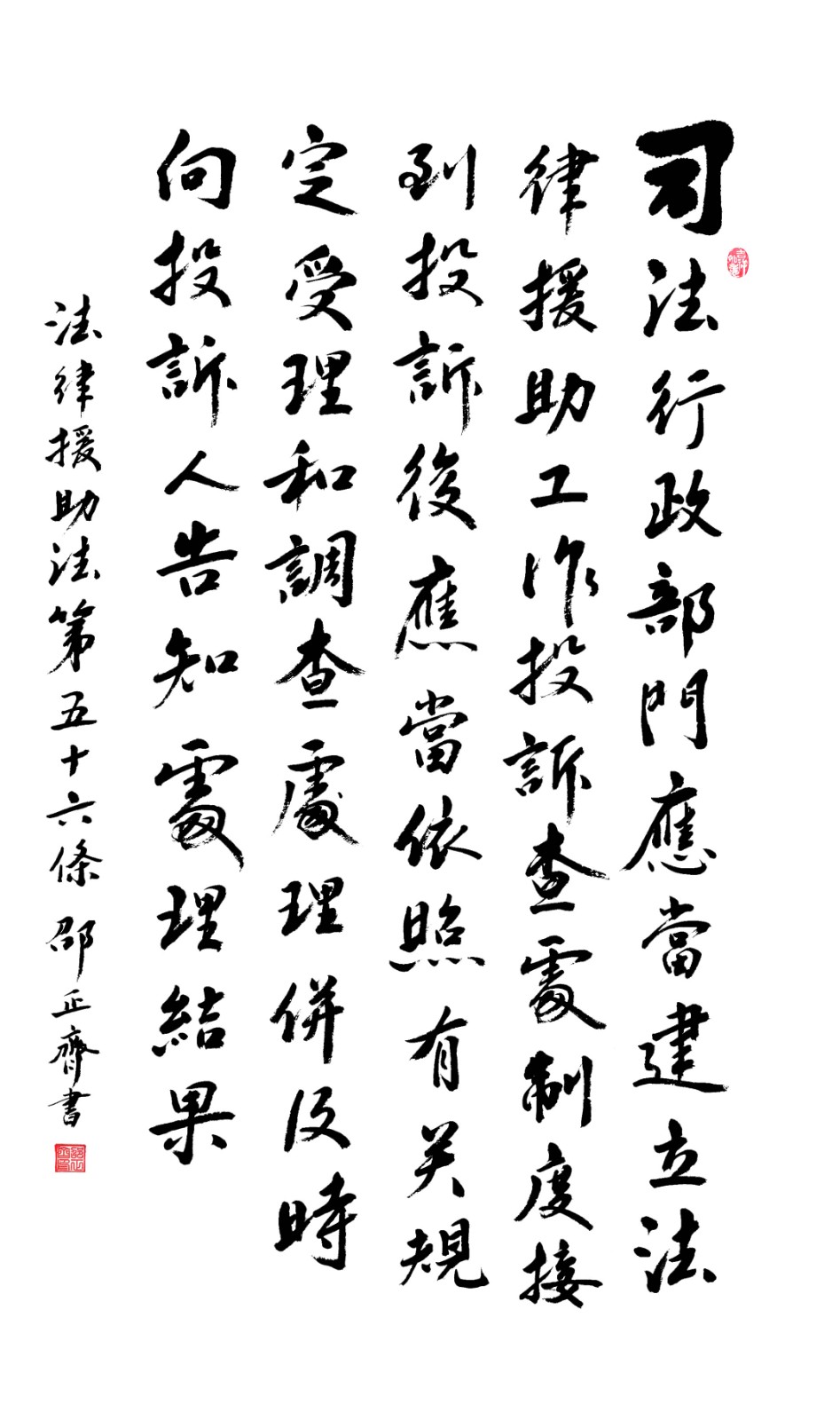 法律援助法第五十六條 司法行政部門應(yīng)當(dāng)建立法律援助工作投訴查處制度;接到投訴后,應(yīng)當(dāng)依照有關(guān)規(guī)定受理和調(diào)查處理,并及時(shí)向投訴人告知處理結(jié)果。