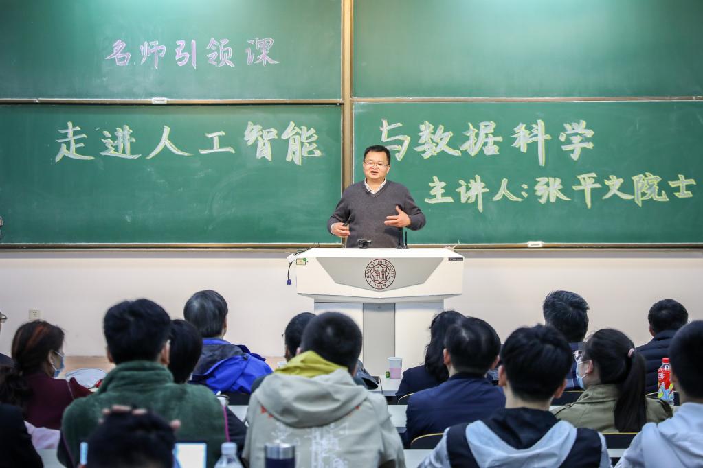 中國科學(xué)院院士張平文為南開學(xué)子講授“名師引領(lǐng)”通識課之“走進人工智能與數(shù)據(jù)科學(xué)”。(南開大學(xué)供圖)