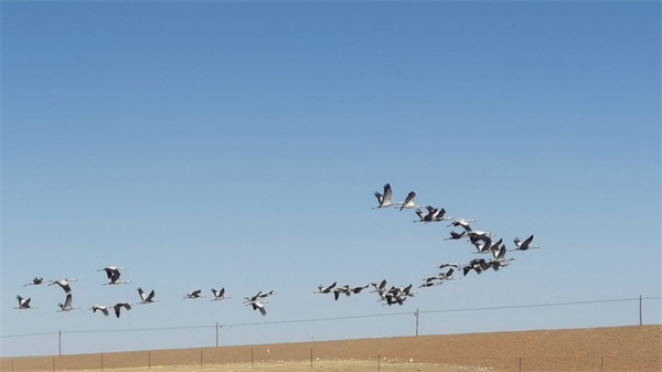 今年3月,青海果洛藏族自治州瑪多縣境內(nèi)的三江源國(guó)家公園,蓑羽鶴在飛翔。新華社記者呂雪莉攝