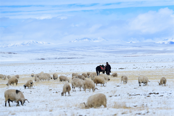 2021年10月,牧民在三江源國(guó)家公園黃河源園區(qū)放牧。新華社記者張龍攝