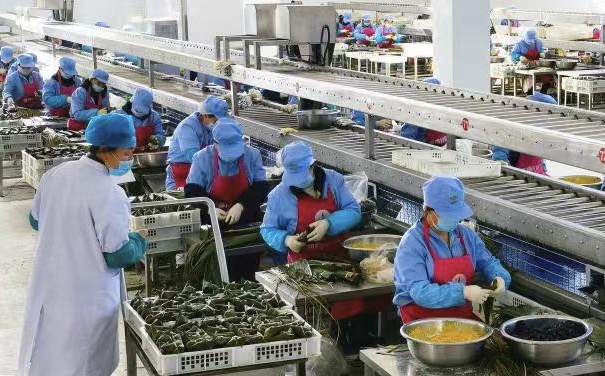 張新勤成為村里“吃螃蟹”的第一批人。他成立了臨縣青塘食品有限公司,采用本地優(yōu)質(zhì)糯米、黃河灘棗和甘甜的青塘水制作粽子,包出的粽子口感香滑、色澤鮮美,逐漸將“青塘粽子”的名號(hào)打了出去。
