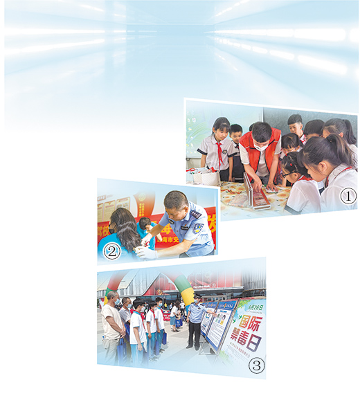 圖①:浙江省平陽縣公安局和禁毒辦工作人員到中小學(xué)開展毒品預(yù)防宣傳教育活動。