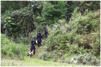 6月6日,民警帶領(lǐng)警犬進(jìn)山執(zhí)行搜索任務(wù)。