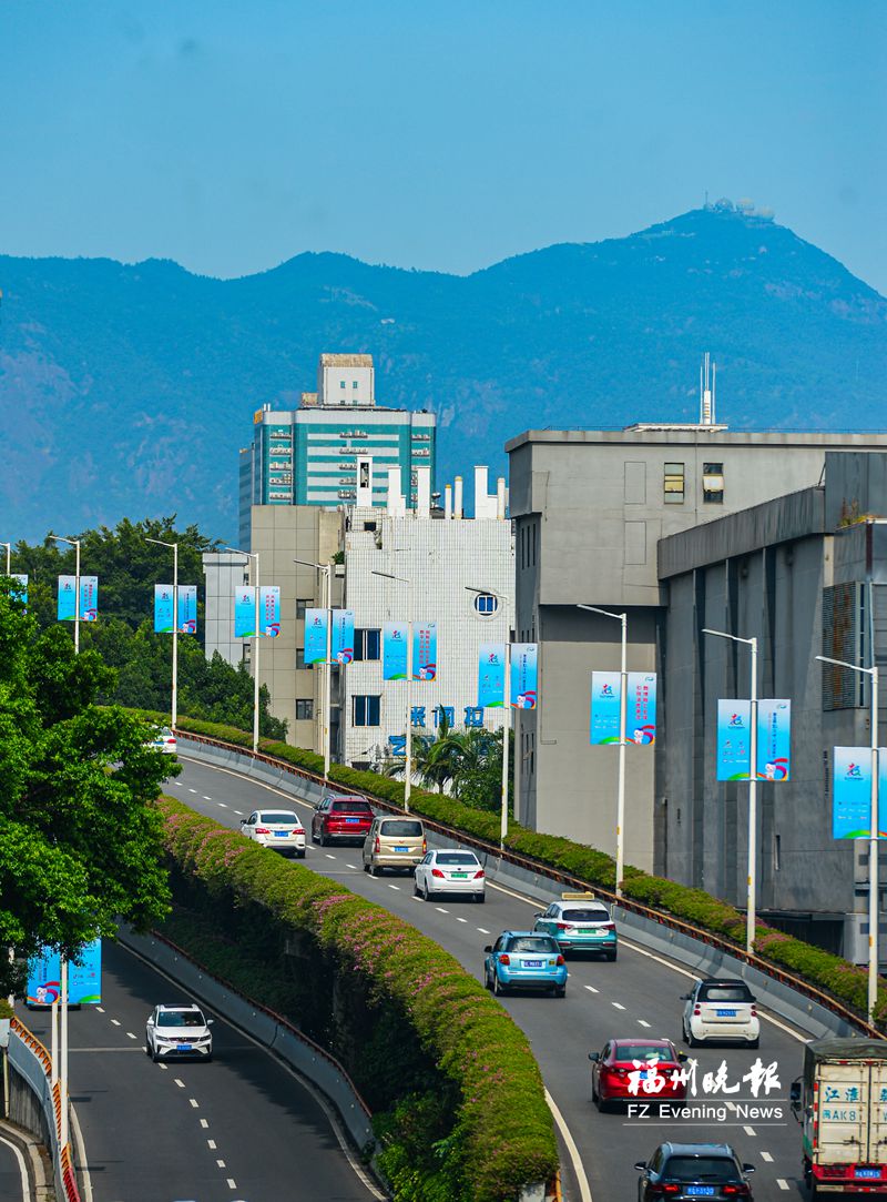 數(shù)字峰會即將舉辦,榕城街頭氛圍濃厚。圖為烏山立交橋上的數(shù)字峰會宣傳標(biāo)語。