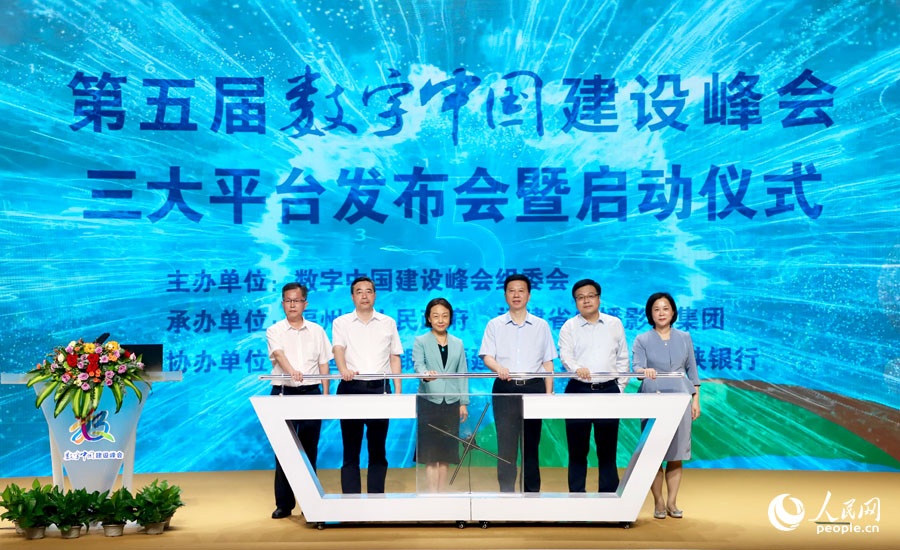 第五屆數(shù)字中國(guó)建設(shè)峰會(huì)三大平臺(tái)發(fā)布會(huì)暨啟動(dòng)儀式現(xiàn)場(chǎng)。人民網(wǎng) 謝小姿 攝