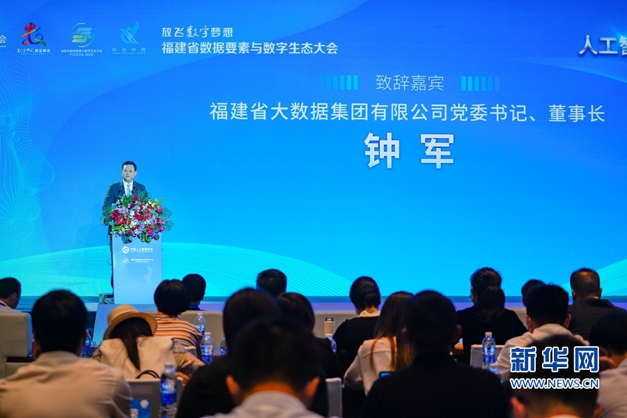 福建省大數(shù)據(jù)集團(tuán)有限公司黨委書(shū)記、董事長(zhǎng)鐘軍在論壇上致辭。新華網(wǎng) 蔣巧玲 攝