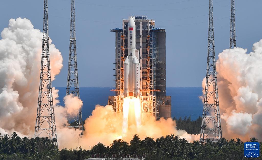 7月24日,搭載問天實(shí)驗(yàn)艙的長征五號B遙三運(yùn)載火箭在文昌航天發(fā)射場成功發(fā)射。新華社記者 楊冠宇 攝