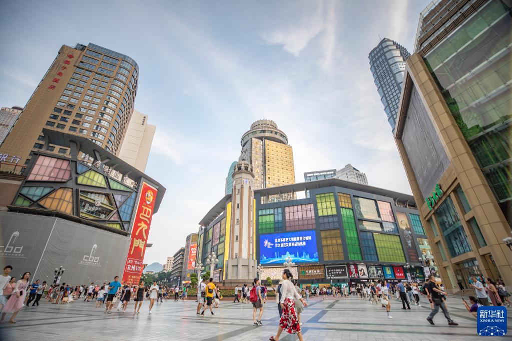 游客在重慶市渝中區(qū)解放碑步行街觀光游玩(2019年8月20日攝)。新華社記者 黃偉 攝