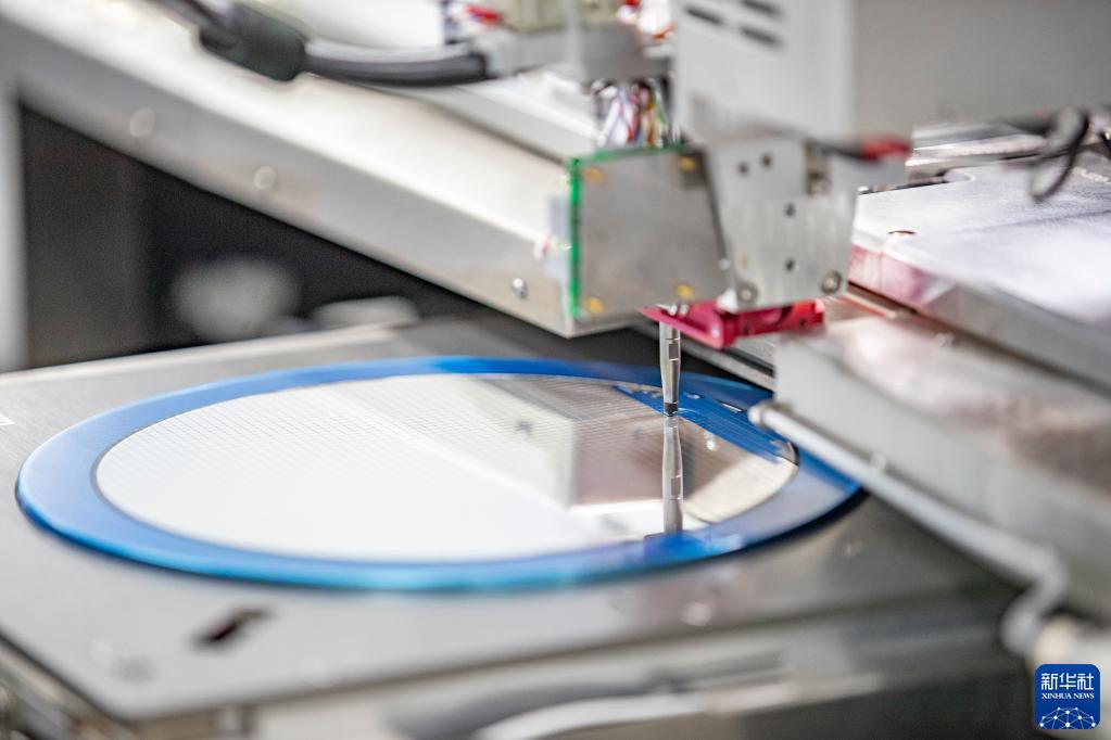 在重慶平創(chuàng)半導(dǎo)體研究院有限責(zé)任公司,工作人員利用設(shè)備對(duì)芯片進(jìn)行貼片作業(yè)(2022年4月15日攝)。新華社記者 黃偉 攝