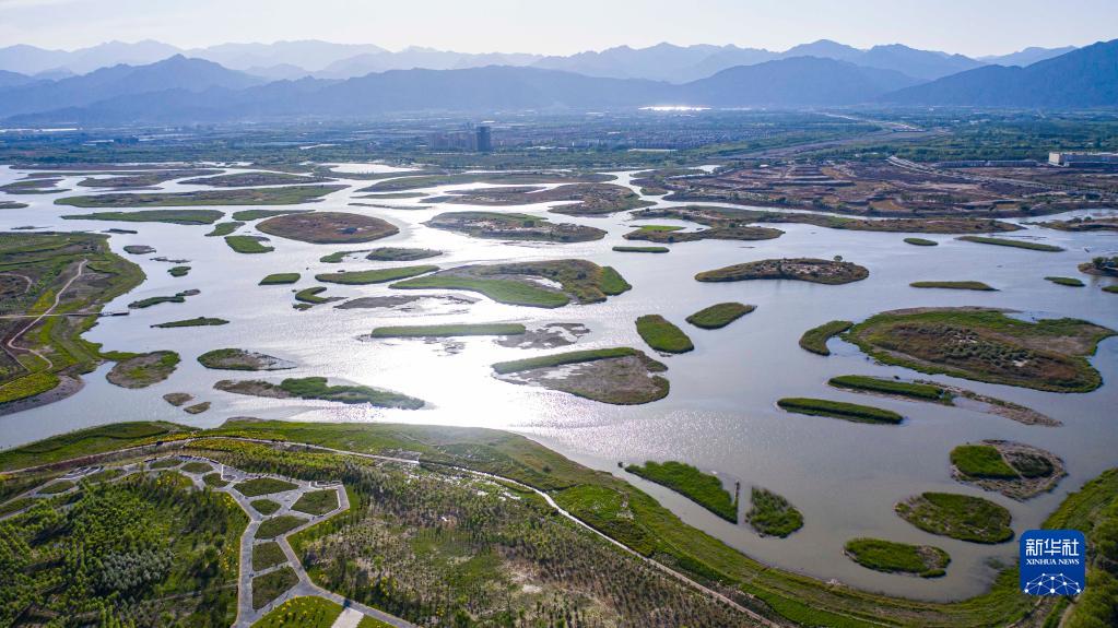 寧夏石嘴山市星海湖(2022年5月30日攝,無人機(jī)照片)。新華社記者 楊植森 攝
