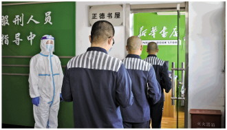 圖為鄧甲龍(左一)組織罪犯購(gòu)書(shū)。 受訪者供圖