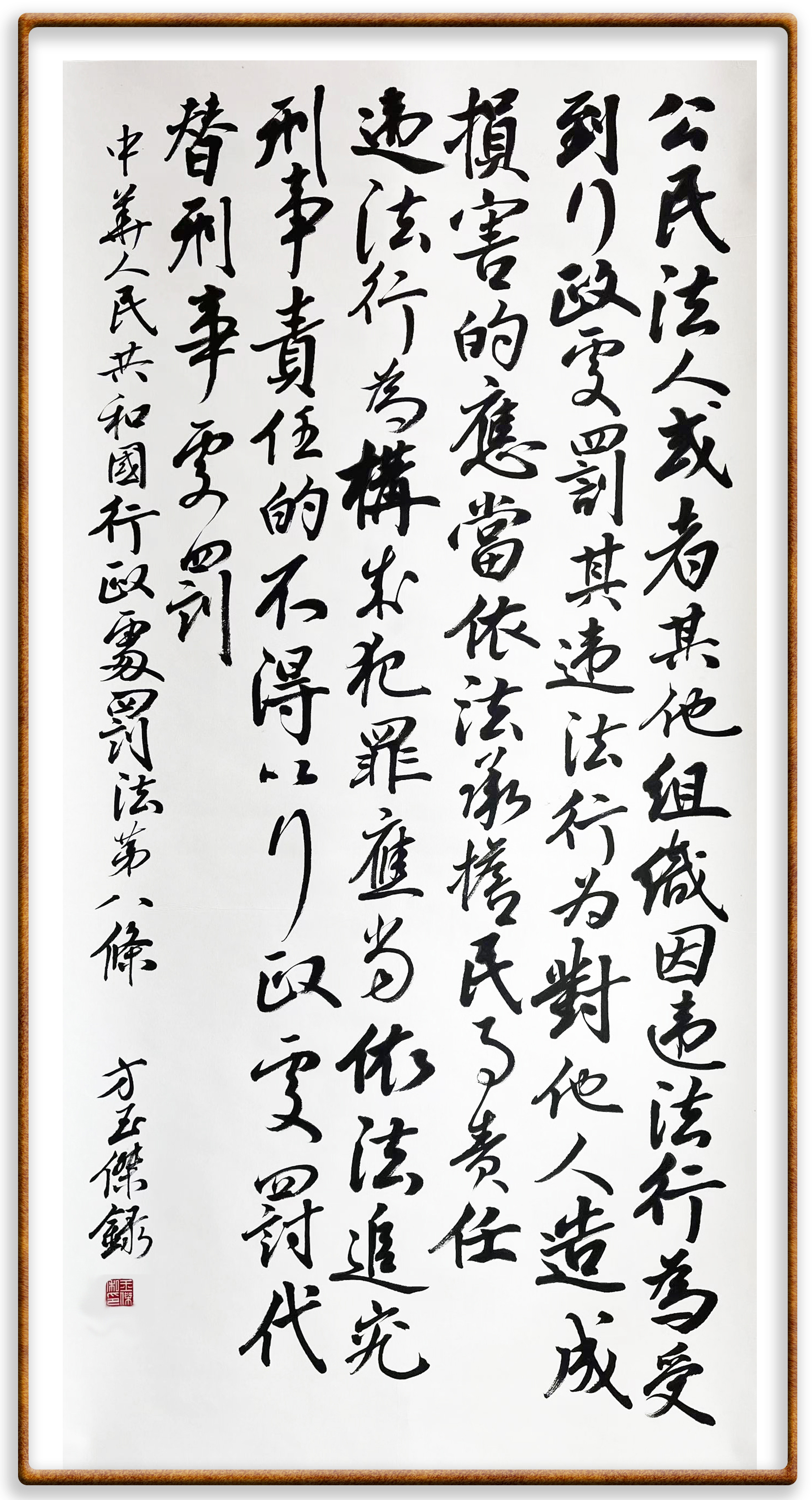繼《中華人民共和國民法典》《中華人民共和國土地管理法》《中華人民共和國土地管理法實施條例》《中華人民共和國法律援助法》之后,法治日報社聯(lián)合北京市司法局、北京市書法家協(xié)會,將筆端對準《中華人民共和國憲法》和《中華人民共和國行政處罰法》。