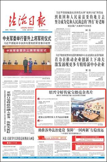 一直以來,紹興都倍加珍惜“楓橋經(jīng)驗(yàn)”這個(gè)“傳家寶”,倍加呵護(hù)這張“金名片”。去年以來,紹興市起草制定《紹興市“楓橋經(jīng)驗(yàn)”傳承發(fā)展條例》(目前已提請省人大常委會(huì)審議批準(zhǔn)),通過立法,把“楓橋經(jīng)驗(yàn)”這一基層治理經(jīng)驗(yàn)上升為普遍的法治規(guī)則,總結(jié)提煉轉(zhuǎn)化為社會(huì)治理中具有普遍意義的法治模式。