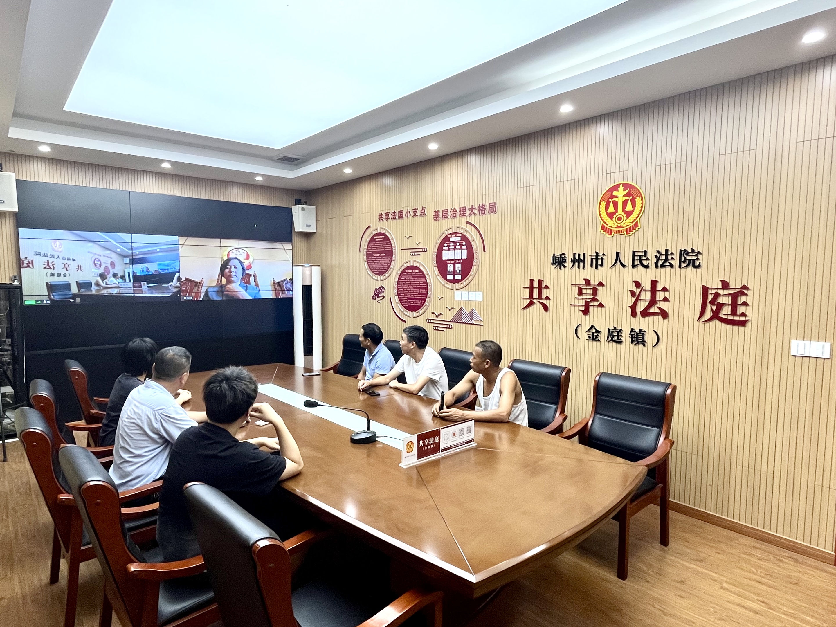 圖為2022年8月5日,紹興嵊州金庭鎮(zhèn)當(dāng)事人在“共享法庭”與法官遠(yuǎn)程連線,在線化解糾紛。 紹興中院供圖