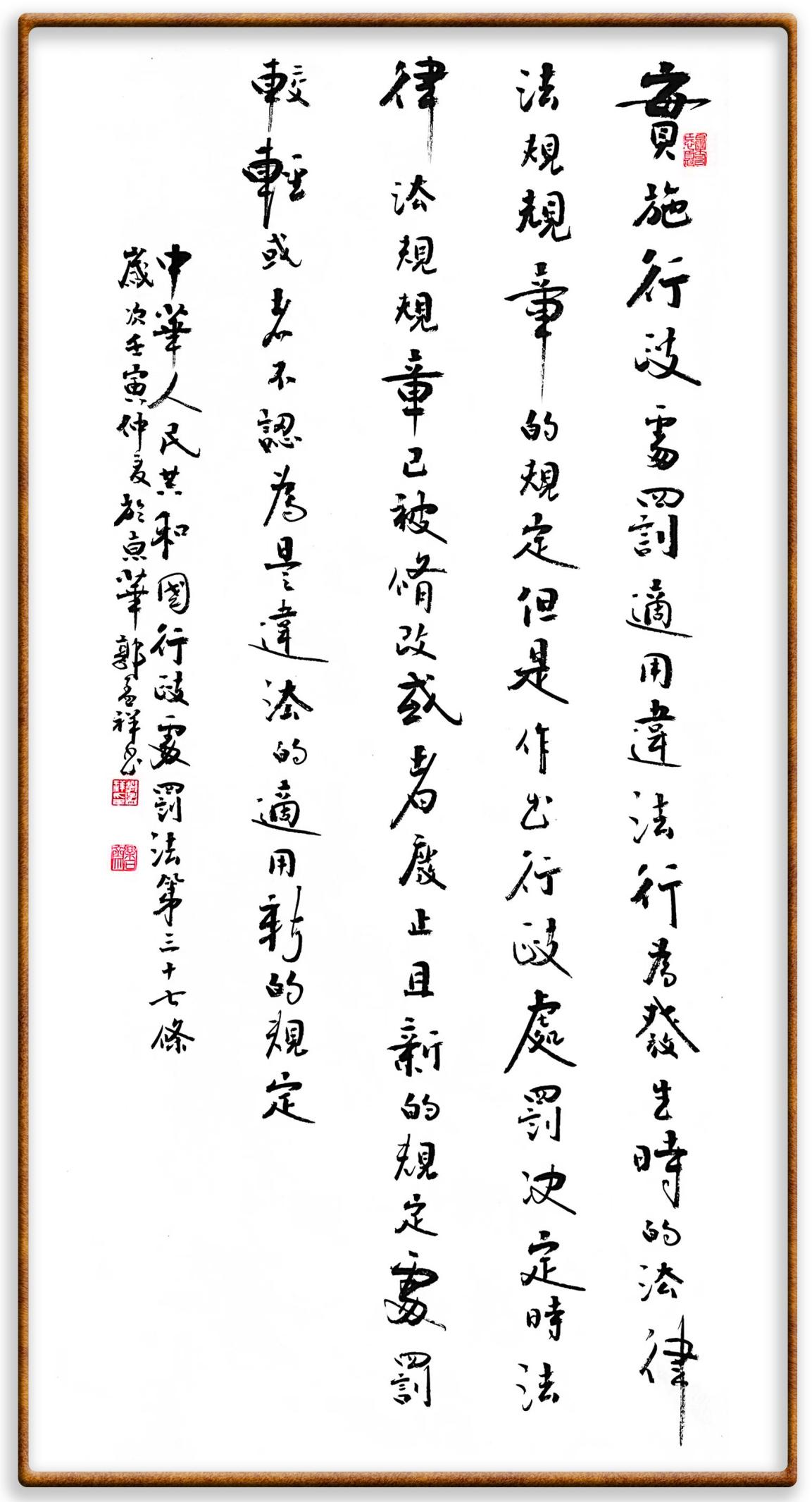 繼《中華人民共和國民法典》《中華人民共和國土地管理法》《中華人民共和國土地管理法實施條例》《中華人民共和國法律援助法》之后,法治日報社聯(lián)合北京市司法局、北京市書法家協(xié)會,將筆端對準(zhǔn)《中華人民共和國憲法》和《中華人民共和國行政處罰法》。
