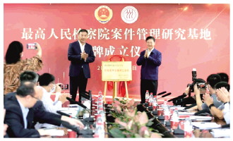 本報(bào)訊 記者蔣安杰 日前,最高人民檢察院檢察案件管理研究基地揭牌成立儀式在中國(guó)人民大學(xué)舉行。最高人民檢察院黨組副書(shū)記、常務(wù)副檢察長(zhǎng)童建明與中國(guó)人民大學(xué)黨委書(shū)記張東剛分別為檢察案件管理研究基地的成立致辭,并共同為基地揭牌。