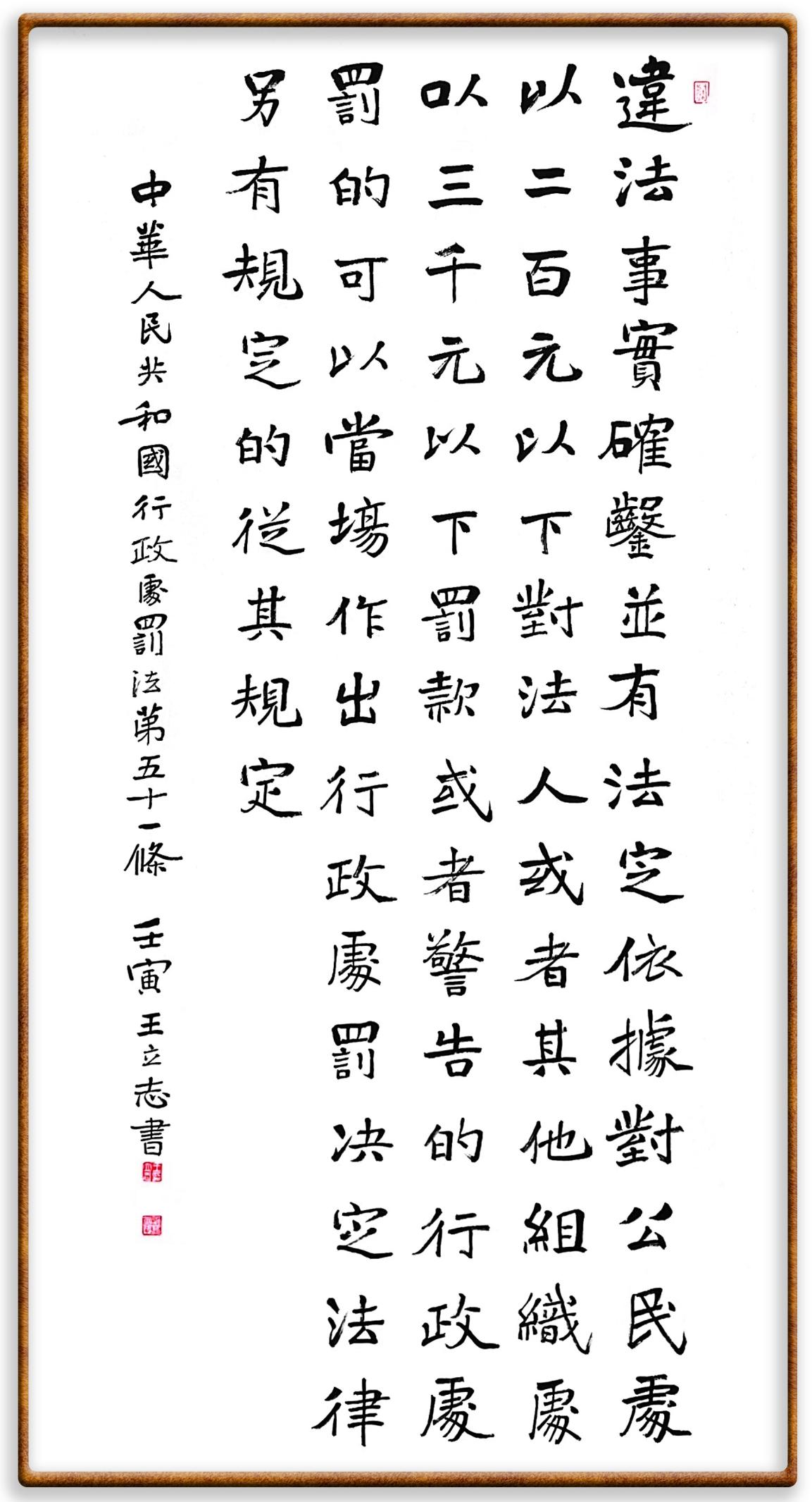 繼《中華人民共和國民法典》《中華人民共和國土地管理法》《中華人民共和國土地管理法實施條例》《中華人民共和國法律援助法》之后,法治日報社聯(lián)合北京市司法局、北京書法家協(xié)會,將筆端對準(zhǔn)《中華人民共和國憲法》和《中華人民共和國行政處罰法》。