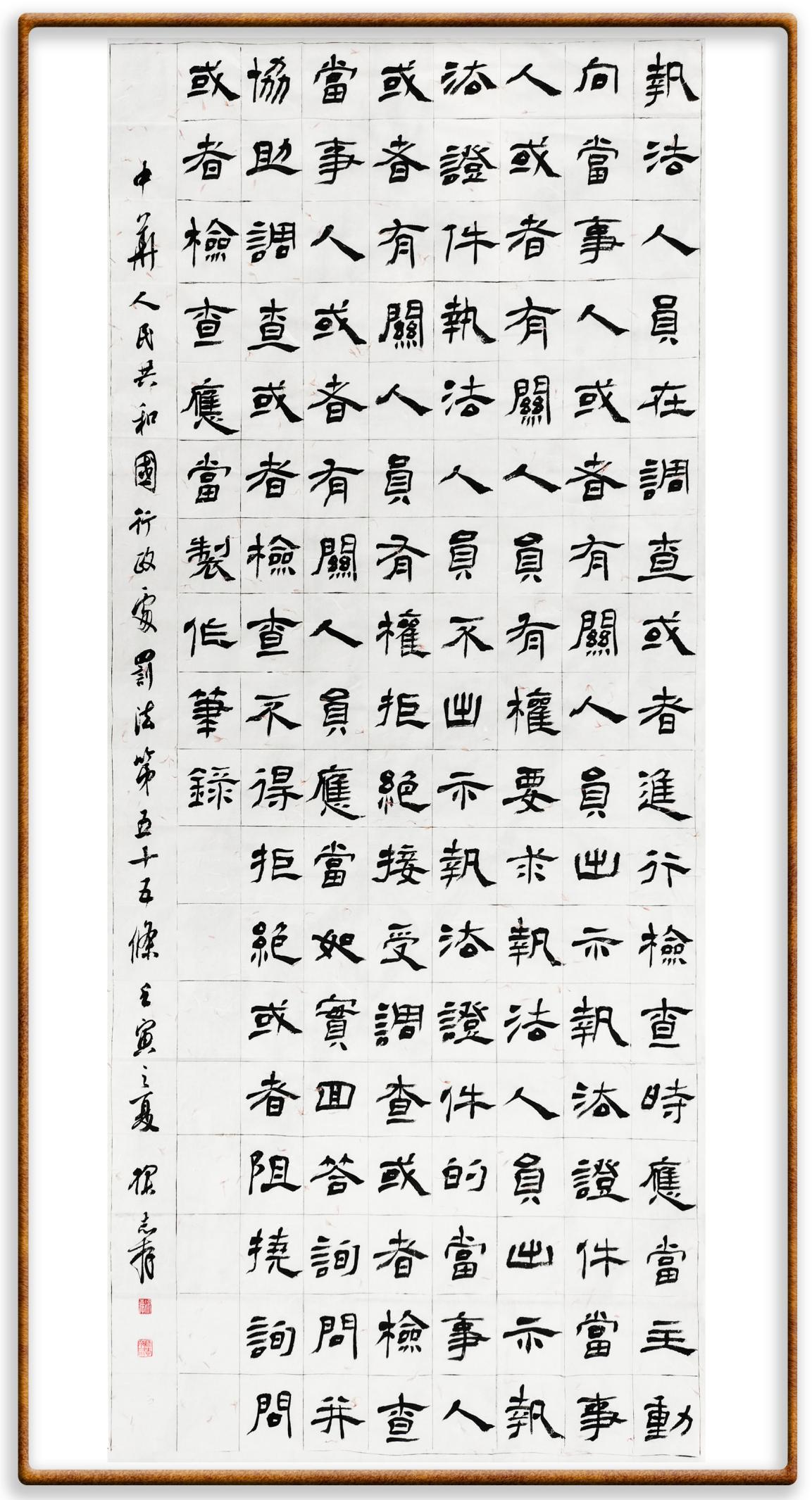繼《中華人民共和國民法典》《中華人民共和國土地管理法》《中華人民共和國土地管理法實施條例》《中華人民共和國法律援助法》之后,法治日報社聯(lián)合北京市司法局、北京書法家協(xié)會,將筆端對準《中華人民共和國憲法》和《中華人民共和國行政處罰法》。