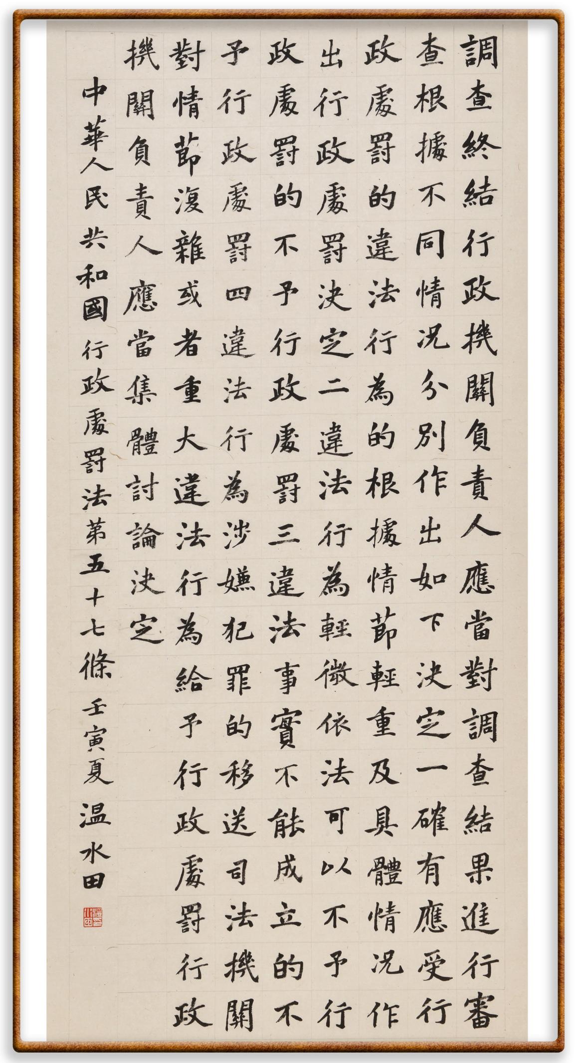 繼《中華人民共和國民法典》《中華人民共和國土地管理法》《中華人民共和國土地管理法實施條例》《中華人民共和國法律援助法》之后,法治日報社聯(lián)合北京市司法局、北京書法家協(xié)會,將筆端對準《中華人民共和國憲法》和《中華人民共和國行政處罰法》。