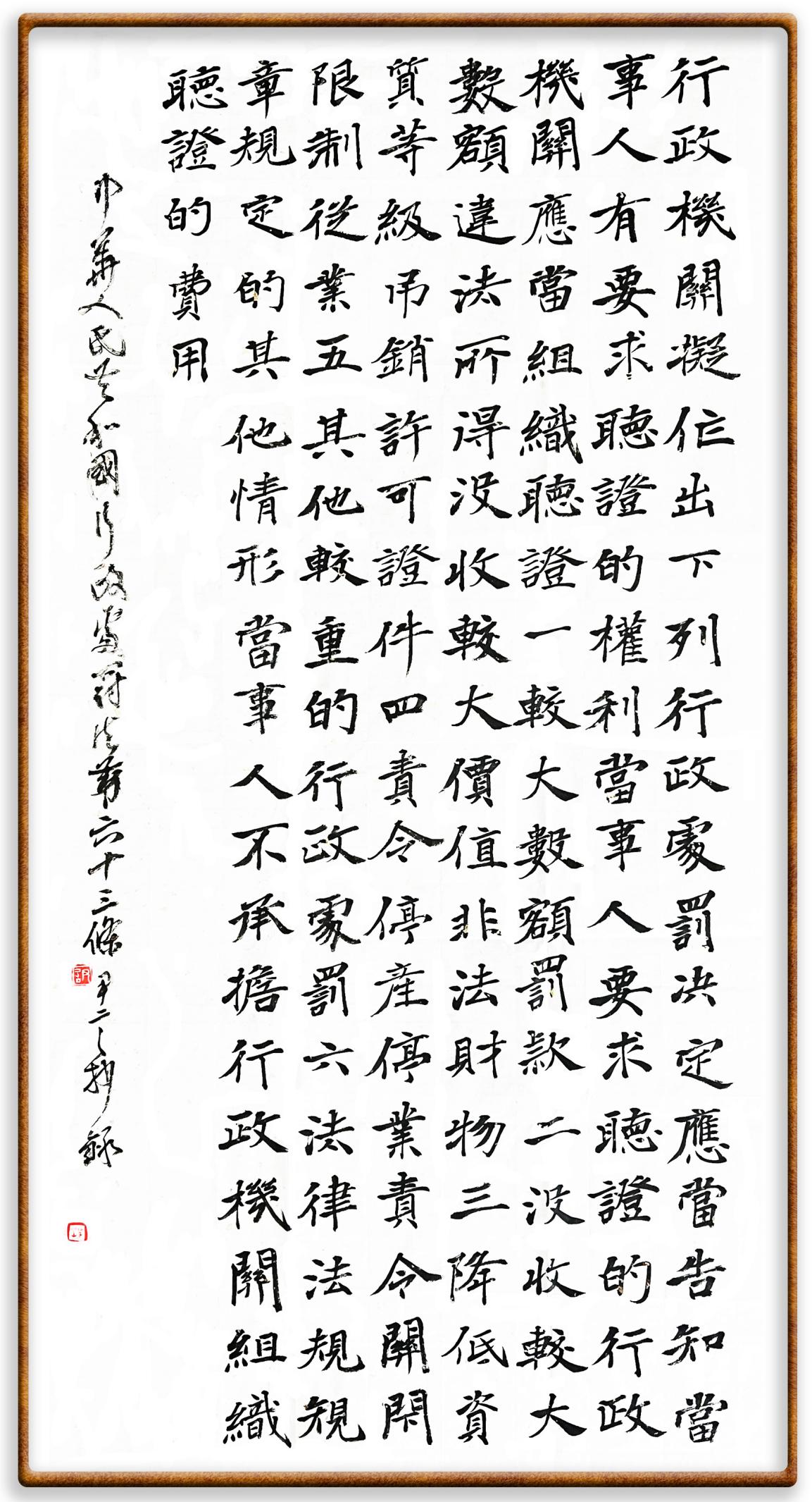 繼《中華人民共和國(guó)民法典》《中華人民共和國(guó)土地管理法》《中華人民共和國(guó)土地管理法實(shí)施條例》《中華人民共和國(guó)法律援助法》之后,法治日?qǐng)?bào)社聯(lián)合北京市司法局、北京書(shū)法家協(xié)會(huì),將筆端對(duì)準(zhǔn)《中華人民共和國(guó)憲法》和《中華人民共和國(guó)行政處罰法》。