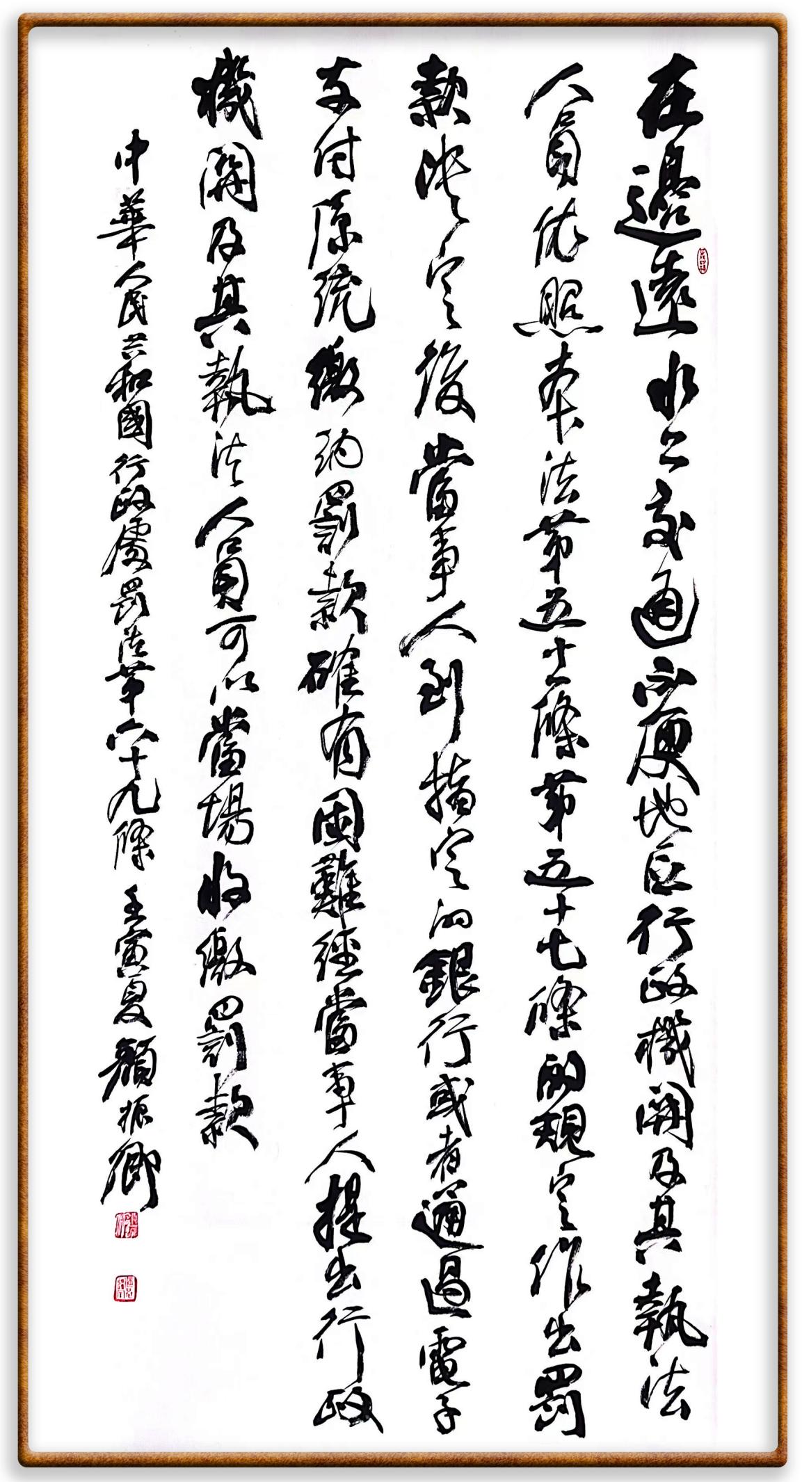 繼《中華人民共和國(guó)民法典》《中華人民共和國(guó)土地管理法》《中華人民共和國(guó)土地管理法實(shí)施條例》《中華人民共和國(guó)法律援助法》之后,法治日?qǐng)?bào)社聯(lián)合北京市司法局、北京書法家協(xié)會(huì),將筆端對(duì)準(zhǔn)《中華人民共和國(guó)憲法》和《中華人民共和國(guó)行政處罰法》。