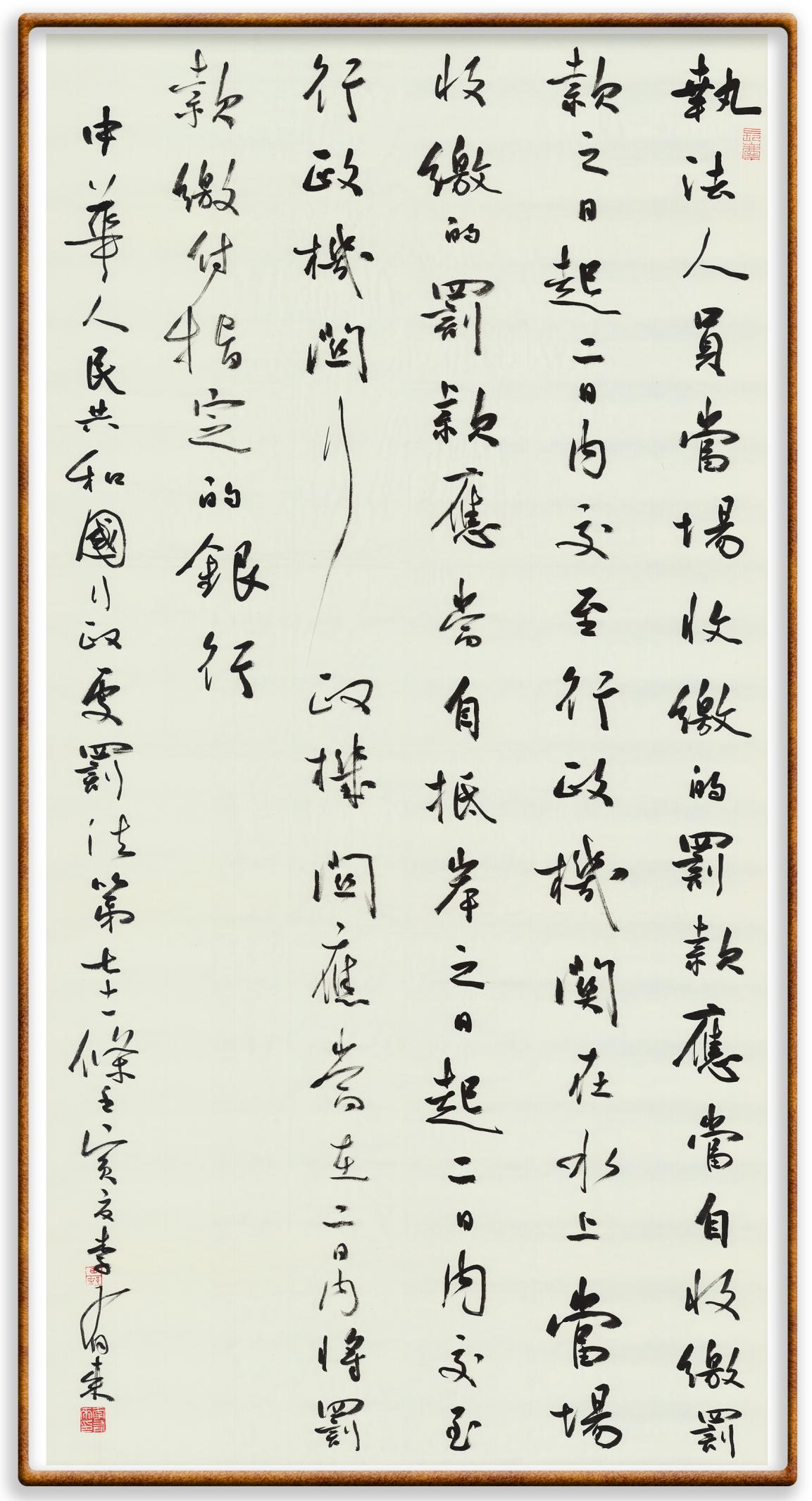 繼《中華人民共和國(guó)民法典》《中華人民共和國(guó)土地管理法》《中華人民共和國(guó)土地管理法實(shí)施條例》《中華人民共和國(guó)法律援助法》之后,法治日?qǐng)?bào)社聯(lián)合北京市司法局、北京書(shū)法家協(xié)會(huì),將筆端對(duì)準(zhǔn)《中華人民共和國(guó)憲法》和《中華人民共和國(guó)行政處罰法》。